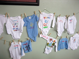 So for the craft I decided it would be fun to let all her friends design a cute onesie for her baby boy.